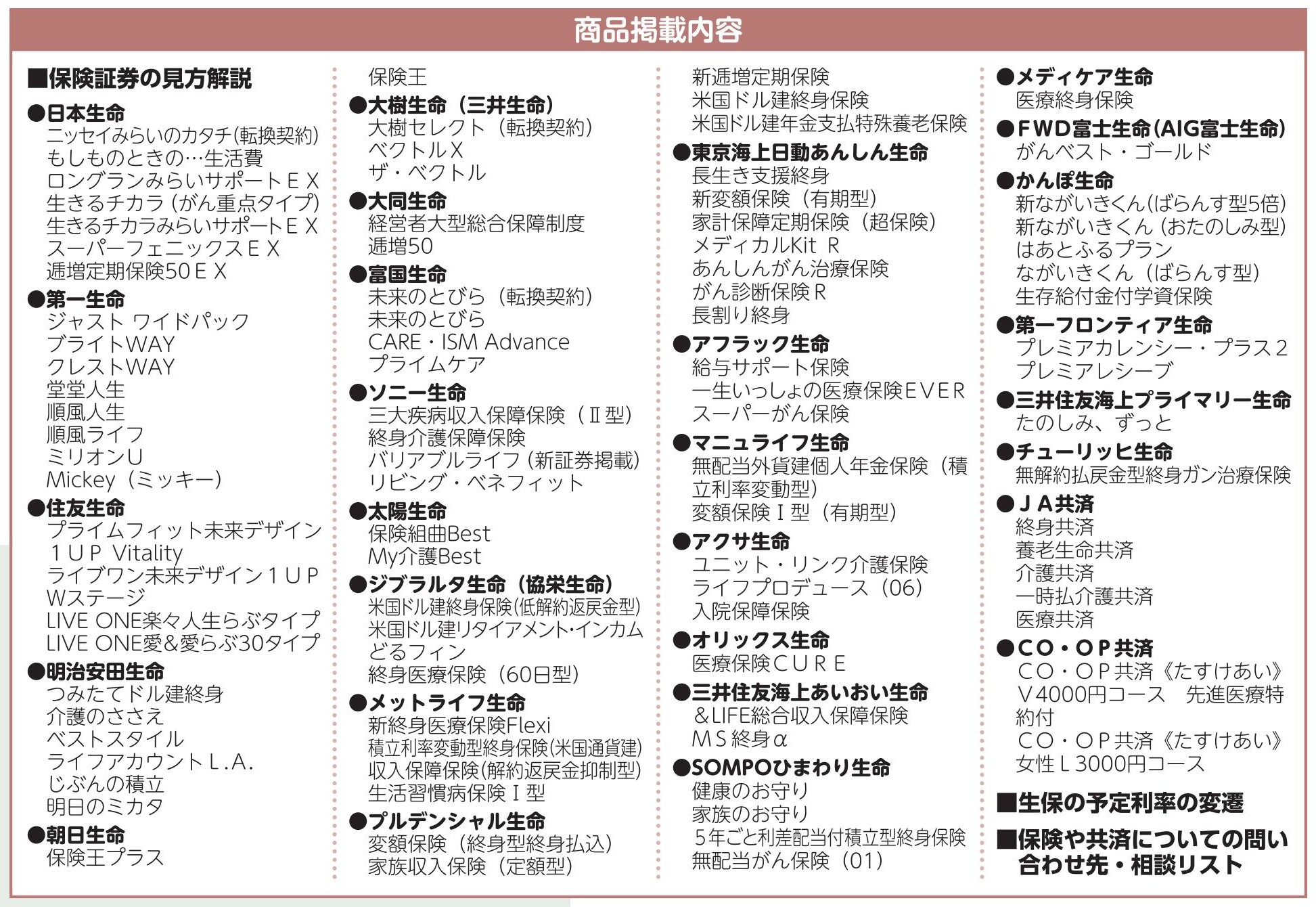 契約内容について契約形態・保障内容(主契約・特約)・保険料の取扱い・ 解約返戻金・その他取扱い別に徹底解説! 本年度版は新たに、第一フロンティア生命「プレミアカレンシー・プラス2」、ジブラルタ生命「米国ドル建終身保険(低解約返戻金型)」、東京海上日動あんしん生命(東京海上あんしん生命)「長割り終身」、マニュライフ生命「無配当外貨建個人年金保険(積立利率変動型)」、明治安田生命「つみたてドル建終身」など外貨建ての商品を中心に追加し、90商品以上の証券モデルを掲載。転換契約の研究にも最適の一冊!
