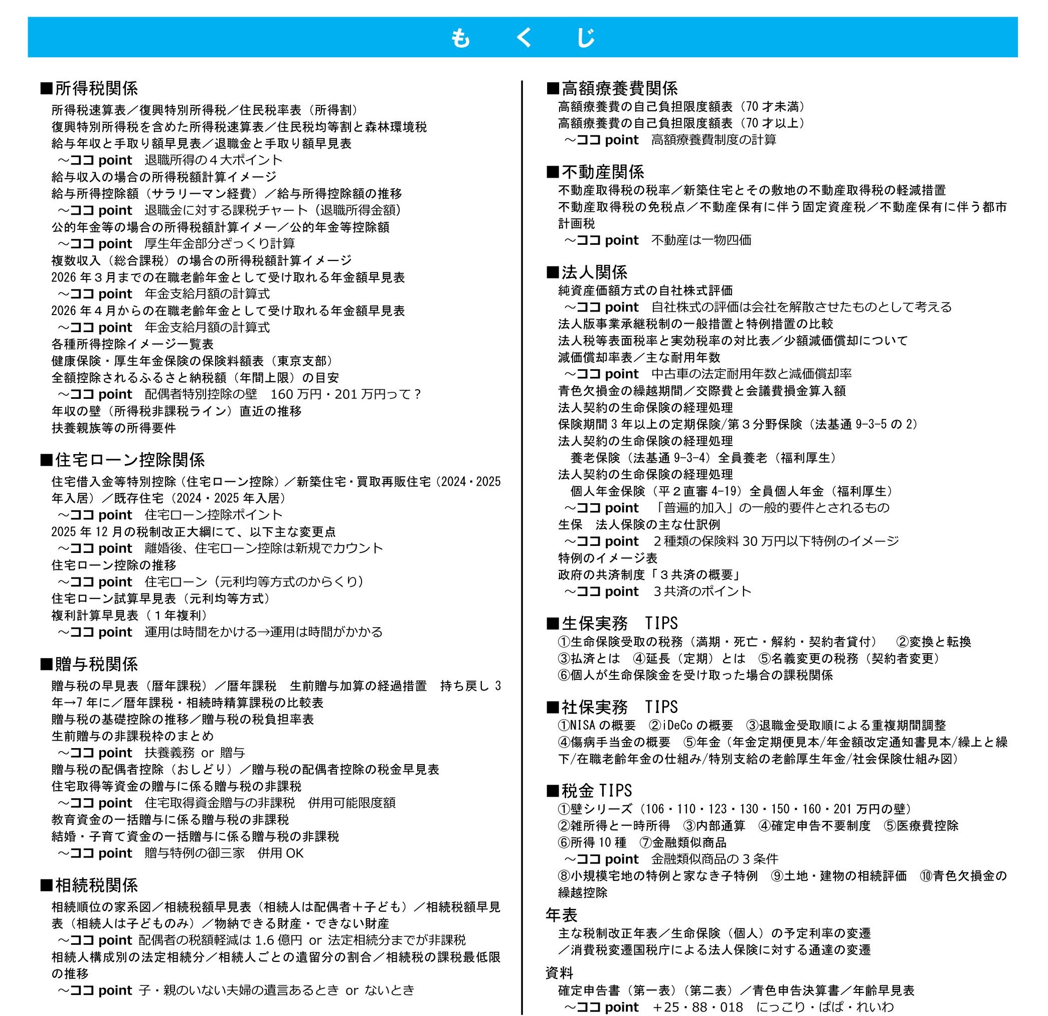 普遍的なテーマから、毎年変わる論点まで、ネット検索やAIに頼る前に、まずこのハンドブックを開けば、おおよその方向性がつかめる。そんな情報を厳選し、一冊にまとめました。生命保険プロフェッショナルプランナーの皆様にご活用いただけましたら幸いです。(井上健哉 拝)