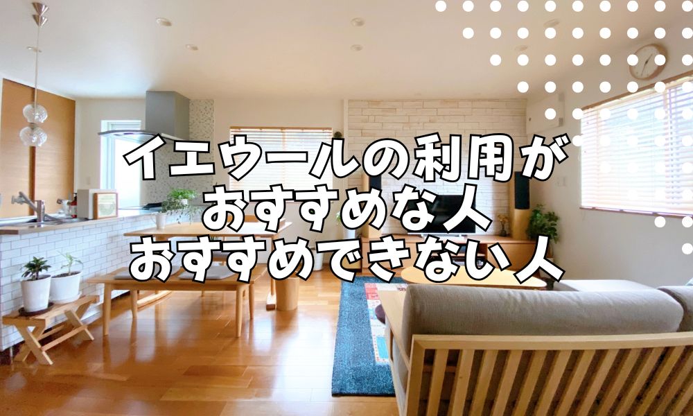 これまで解説してきたイエウールの特徴、メリット・デメリットを踏まえ、どのような方がサービスの利用に適しており、逆にどのような方にはあまり向いていないのかを具体的に整理します。