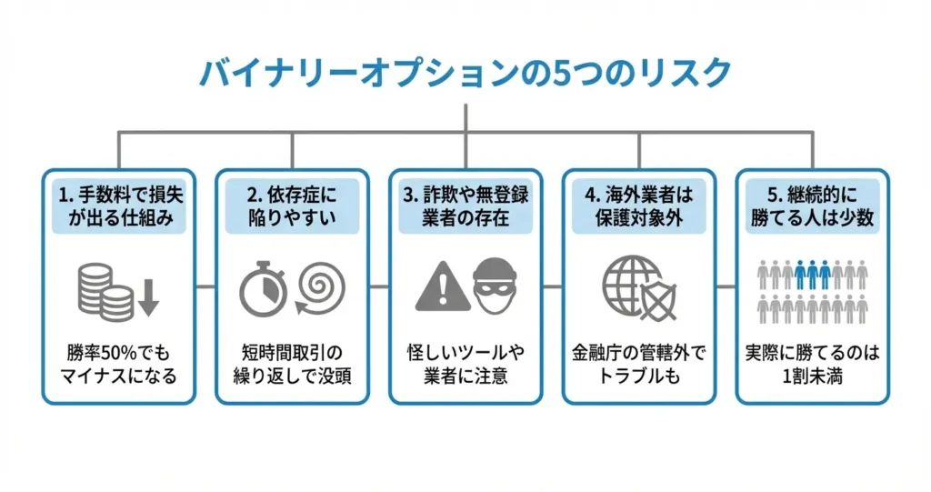 この記事では、バイナリーオプションの実態と評判の背景を整理し、あなた自身が「始めるべきか・避けるべきか」を判断できる情報をお届けします。