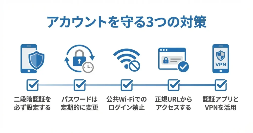 ファイブスターズマーケッツを安全に利用し続けるためには、アカウント保護のための基本的な対策を講じる必要があります。