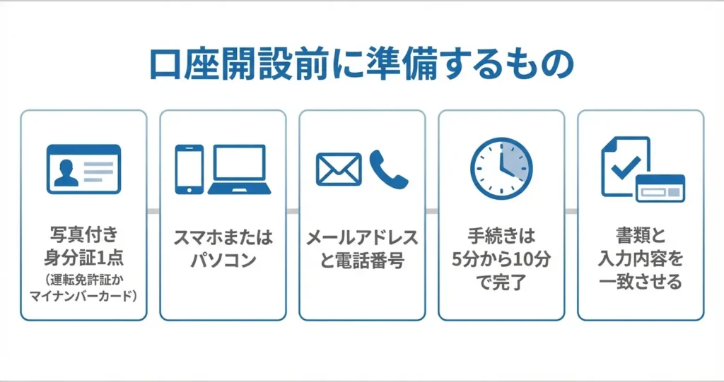 ボーナスの内容や受取条件を理解したうえで、次は実際の口座開設手順と必要書類の準備について確認しておきましょう。