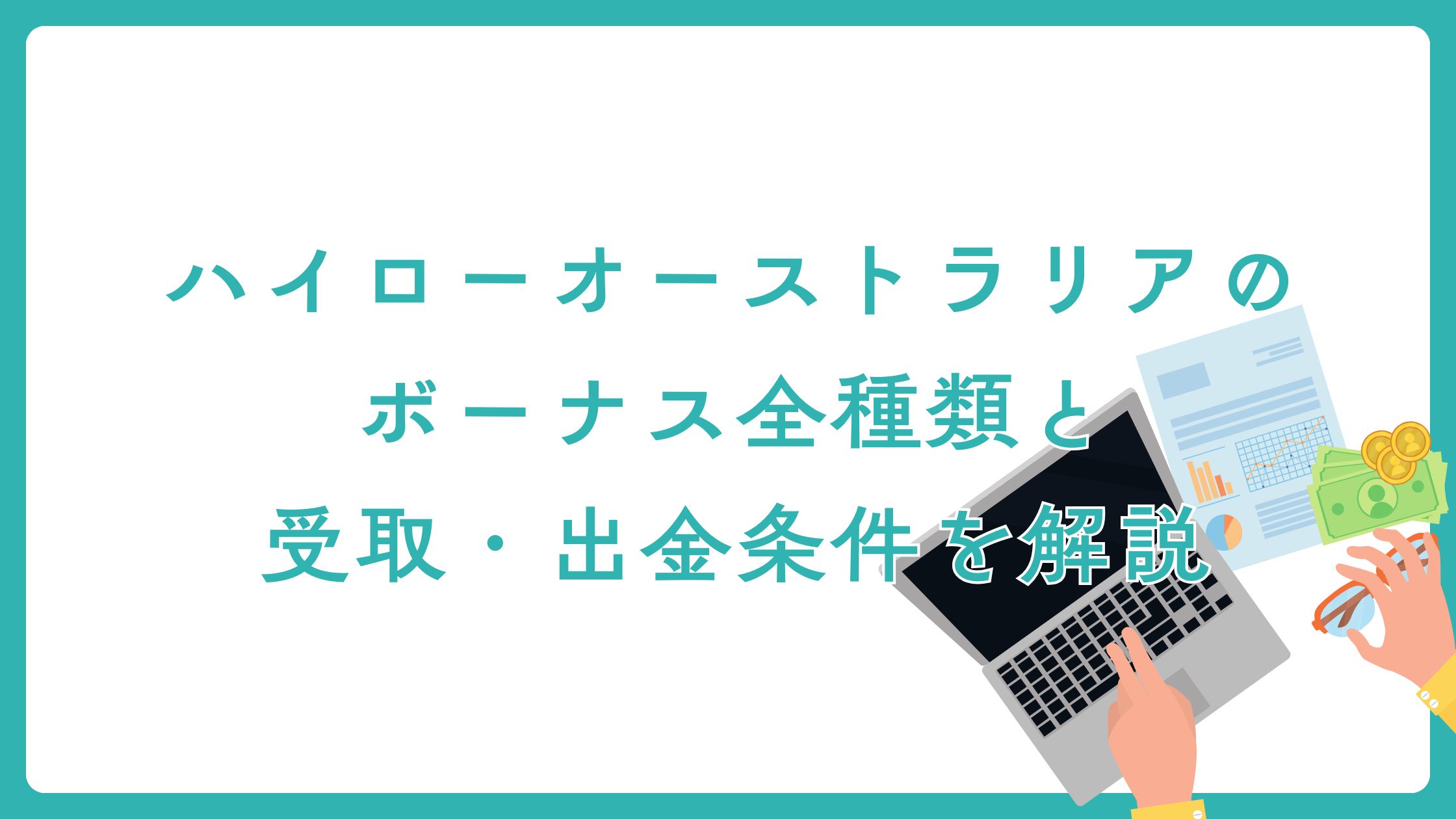 ハイローオーストラリアのボーナスは、口座開設時や入金時に受け取れるものの、受取条件や出金ルールが複雑で「結局いくらもらえるのか」「本当に使えるのか」が分かりにくいと感じていませんか。