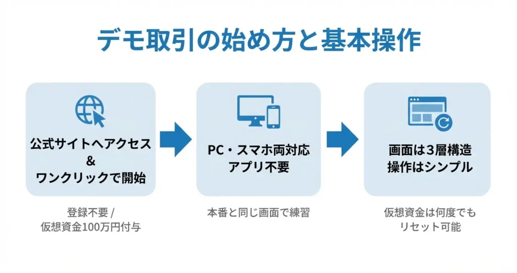 なお、まだデモ取引を試していない段階で本番移行を検討している場合は、まず無料のデモ機能で操作感を確認することをおすすめします。