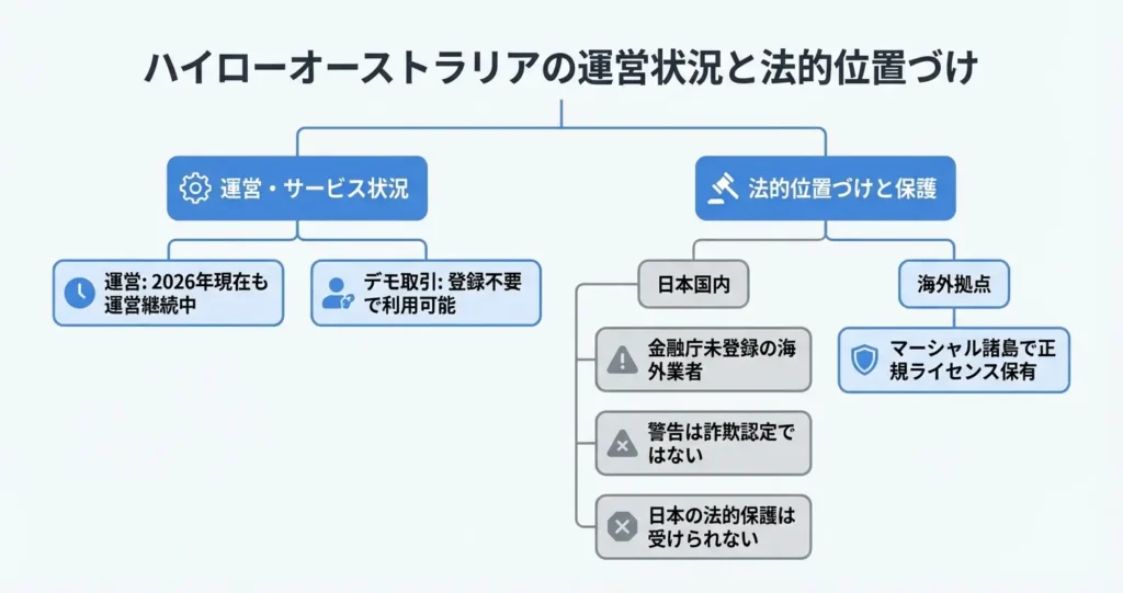 ハイローオーストラリアは2026年現在も運営を継続しており、日本からのアクセスおよび取引は引き続き可能です