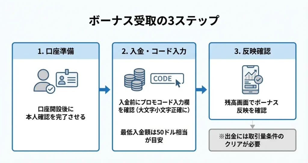 ボーナスは受け取るだけでなく、取引スタイルや出金計画に合わせて活用することで初めて実質的なメリットになります。