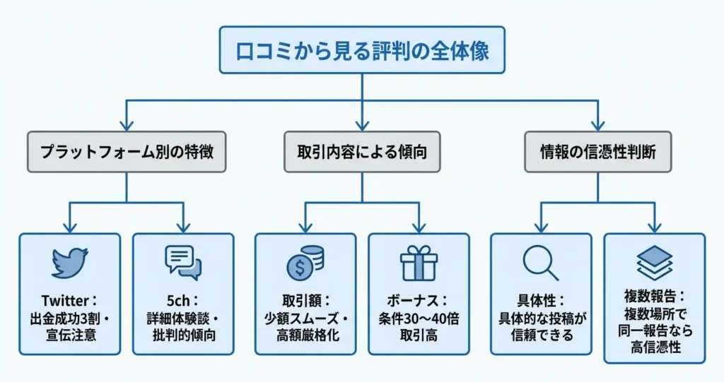 このセクションでは、Twitter・5ch・掲示板などに投稿された口コミを検証し、どのような評価が多いのか、またその情報をどう見極めるべきかを整理します。良い評判も悪い評判も両方を確認することで、より客観的な判断が可能になります。