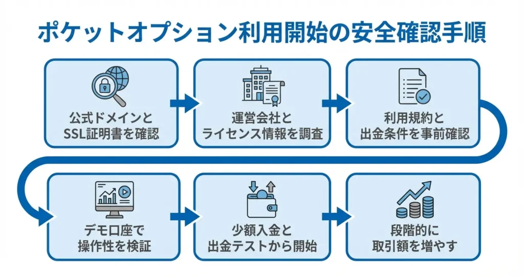 運営会社とライセンス情報を確認し、公式ドメインへのアクセスであることを検証した上で、これらの段階的な確認と準備を行うことで、利用開始時のリスクを最小化し、自分自身で納得した形で取引環境を構築できます。