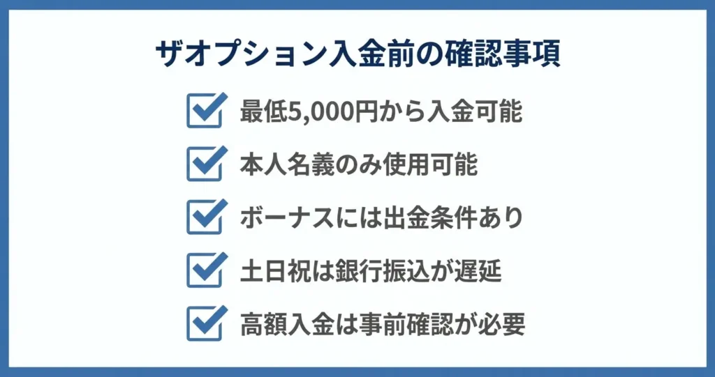 ザオプションの入金では、反映時間や利用できる決済手段について迷われる方が少なくありません。