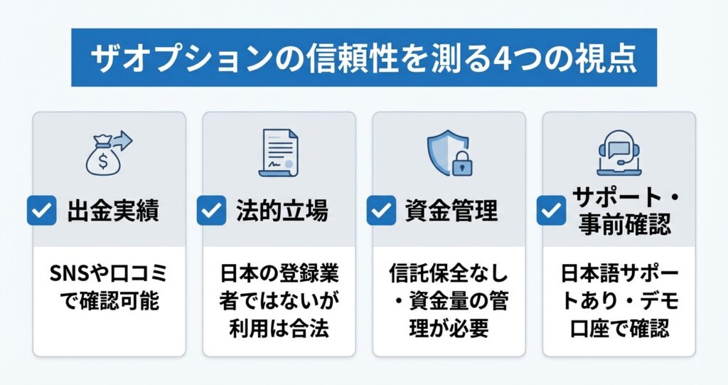 ザオプションの利用を検討する際、安全性や信頼性、実際の利用条件について気になる点は多いものです。