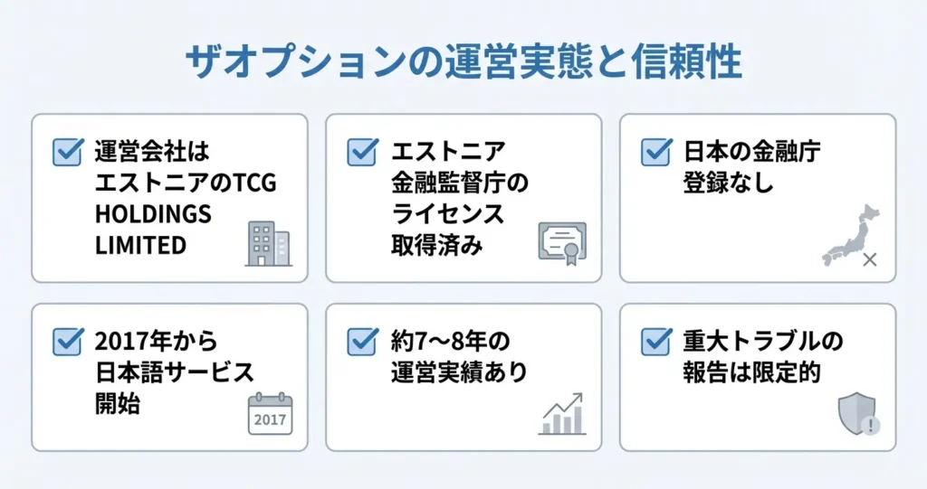 ザオプションはエストニアの金融ライセンスを保有しており、一定の信頼性は認められます。