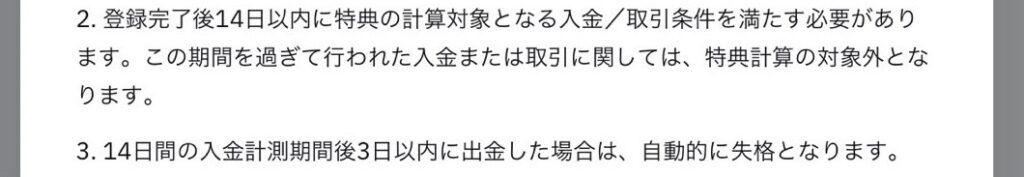 新規口座開設後、7日が経過するとボーナスは消滅する。