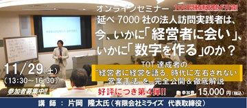 ●2025年11月29日 オンラインセミナー「延べ7000社の法人訪問実践者は、今、いかに「経営者に会い」、いかに「数字を作る」のか?」