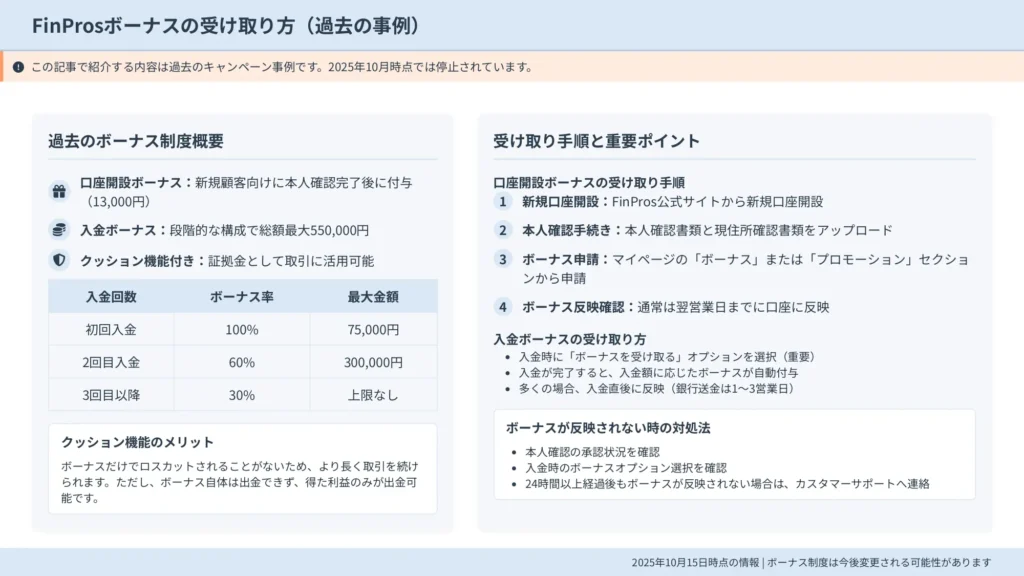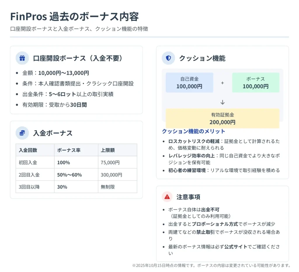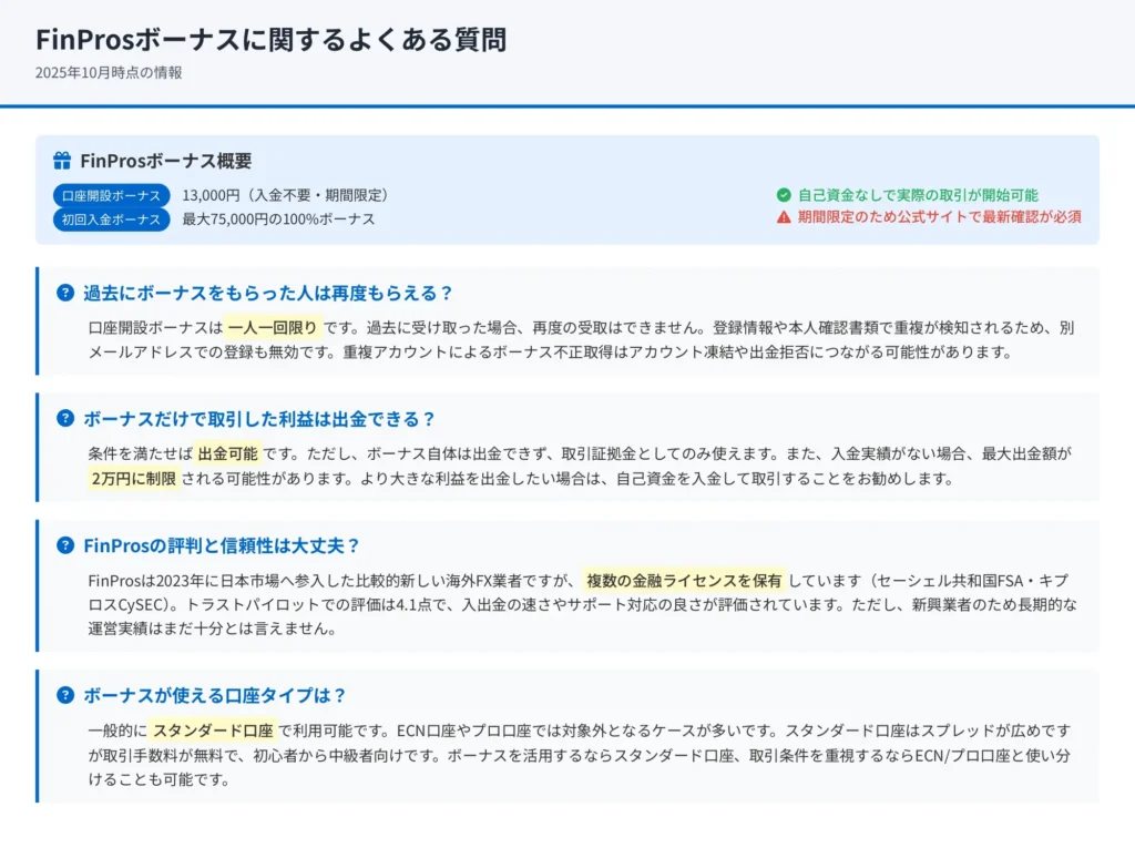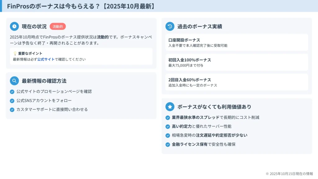 2025年10月時点でのFinProsのボーナス提供状況は、公式サイトのプロモーションページで確認できます。